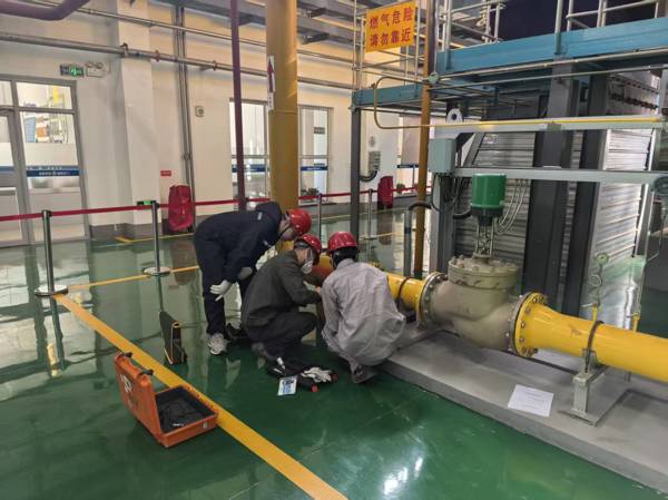 熱力公司工作人員對燃?xì)忮仩t進(jìn)行管道檢測